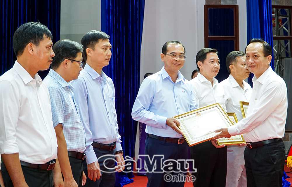 Phó Bí thư Tỉnh uỷ, Chủ tịch UBND tỉnh Phạm Thành Ngại trao bằng khen của Chủ tịch UBND tỉnh cho các cá nhân có thành tích xuất sắc đóng góp vào thành công Đại hội.