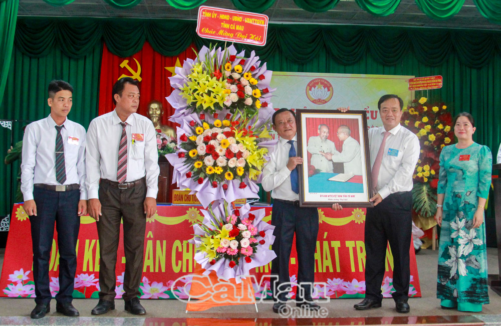 Đồng chí Nguyễn Huy Dũng, Bí thư Đảng uỷ Gành Hào tặng Đại hội bức trướng có dòng chữ “Đoàn kết – Dân chủ - Đổi mới – Phát triển”.