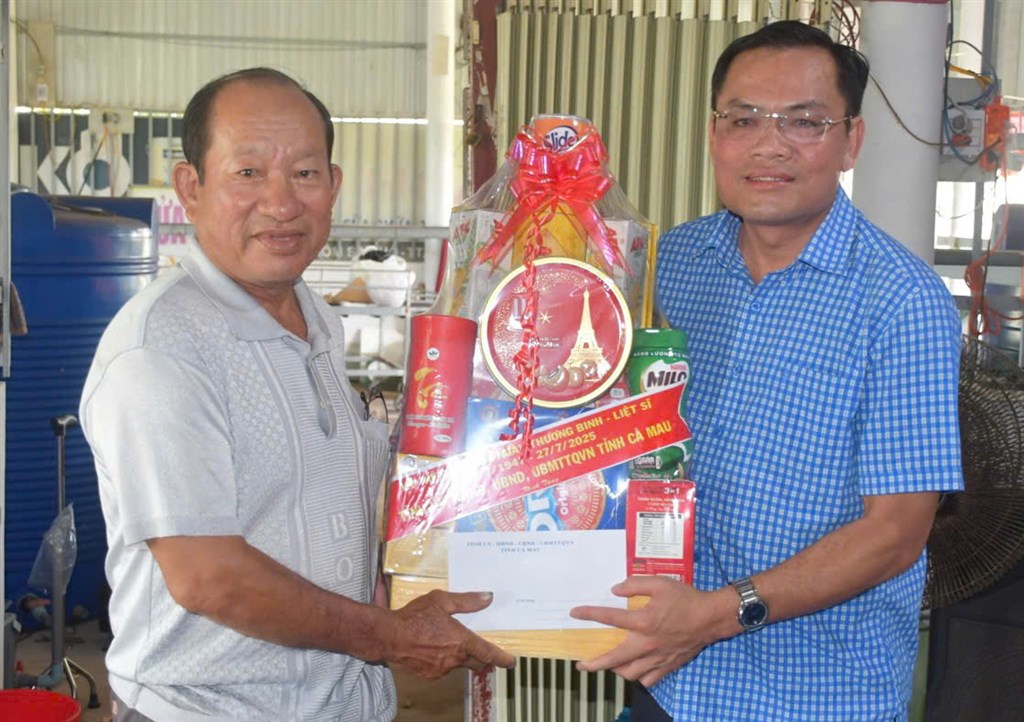 Theo đó, đoàn đã đến thăm ông Nguyễn Văn Dung, sinh năm 1942, thương binh 45% và ông Trần Văn Trăm, sinh năm 1937, thương binh 42% (ở ấp Chống Mỹ B, xã Năm Căn); ông Nguyễn Trường Sơn, sinh năm 1953, thương binh 41 - 61% (ở ấp Sa Phô, xã Đất Mới) và ông Trần Văn Phúc, sinh năm 1950, thương binh 81% (ở ấp Tắc Năm Căn, xã Đất Mới); ông Phạm Văn Giữa, sinh năm 1948, bệnh binh 61 - 70% (ở ấp 4, xã Tam Giang).