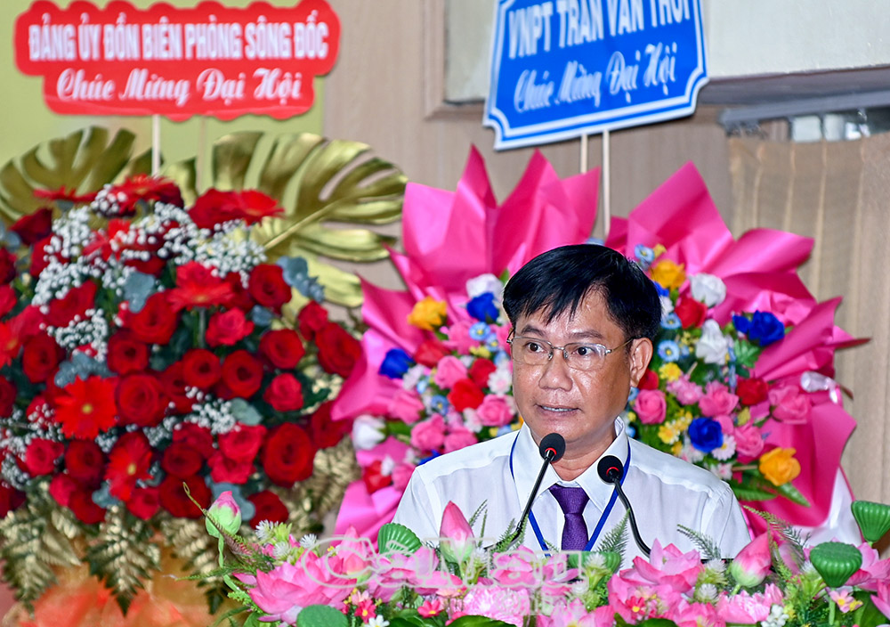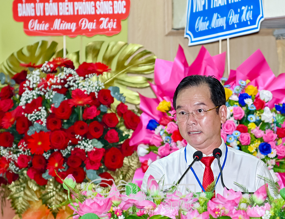Thay mặt Ban Chấp hành Đảng bộ tỉnh, đồng chí Hồ Thanh Thuỷ, Trưởng Ban Tổ chức Tỉnh uỷ tặng bức trướng chúc mừng Đại hội với dòng chữ “ Đoàn kết - Kỷ cương - Đột phá - Phát triển; khai thác tiềm năng, lợi thế, phát triển kinh tế biển, xây dựng Sông Đốc thành đô thị biển phía Tây”.