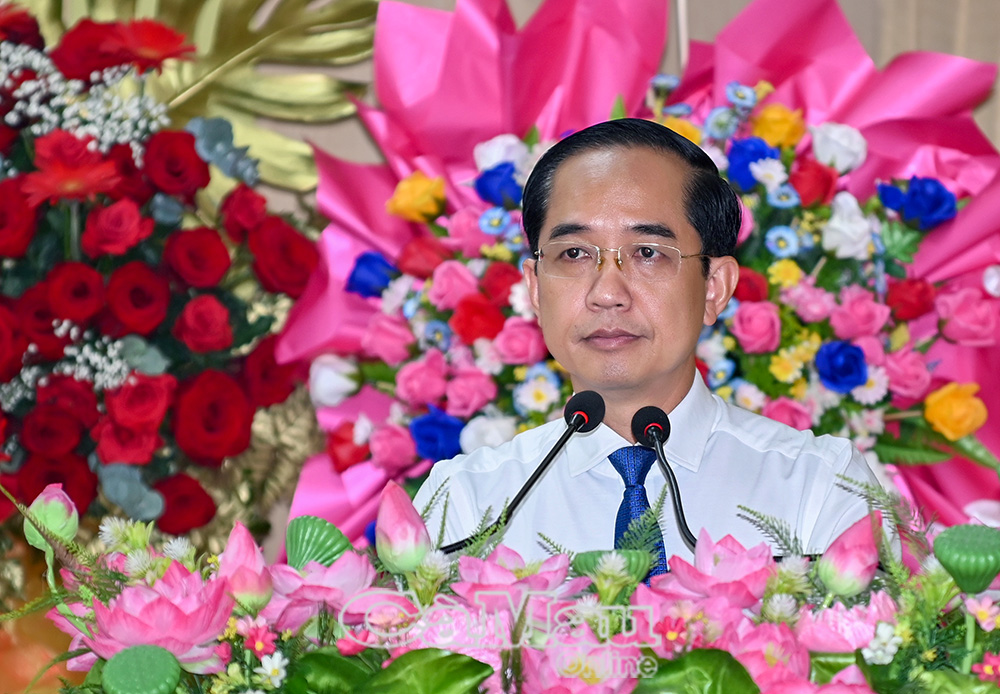 Đồng chí Hồ Thanh Thuỷ, Trưởng Ban Tổ chức Tỉnh uỷ, phát biểu chỉ đạo tại đại hội, nhấn mạnh xây dựng đội ngũ cán bộ chất lượng, có khát vọng vươn lên.