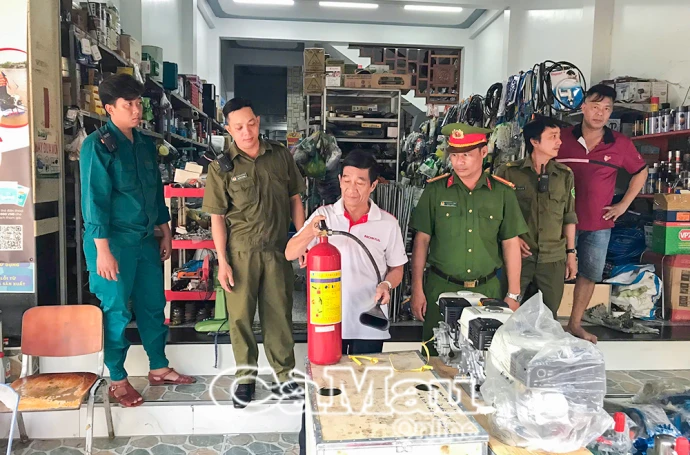 Công an xã đến từng hộ kinh doanh tuyên truyền, vận động chấp hành nghiêm quy định pháp luật.