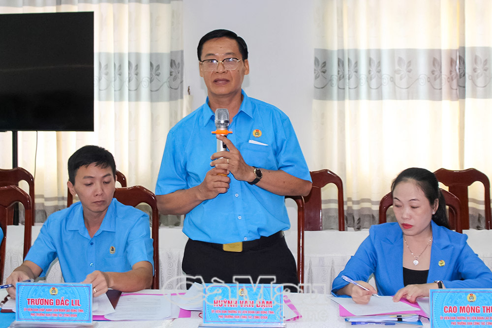 Ông Huỳnh Văn Đậm, Uỷ viên Ban Chấp hành LĐLĐ tỉnh Cà Mau, Trưởng Ban Tuyên giáo - Nữ công, đề xuất cần nhanh chóng tập trung thành lập công đoàn cơ sở các xã, phường trên địa bàn tỉnh Cà Mau sau khi sắp xếp đơn vị hành chính.