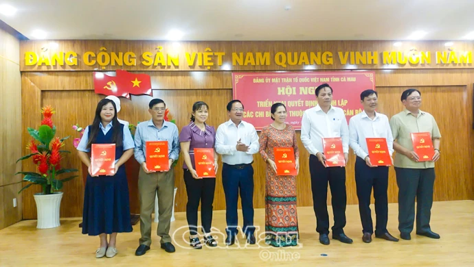 Đồng chí Lê Thanh Triều, Bí thư Đảng uỷ, Phó Chủ tịch Thường trực Uỷ ban MTTQ Việt Nam tỉnh Cà Mau, trao quyết định thành lập các chi bộ do Đảng, Nhà nước giao nhiệm vụ.