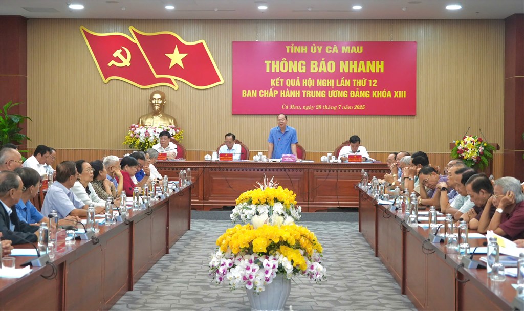 Thay mặt Ban Thường vụ Tỉnh ủy, Phó Bí thư Thường trực Tỉnh ủy, Chủ tịch UBMTTQ Việt Nam tỉnh Huỳnh Quốc Việt thông báo nhanh kết quả Hội nghị lần thứ 12 Ban Chấp hành Trung ương Đảng khóa XIII. Theo đó, Ban Chấp hành Trung ương đã thống nhất phương hướng công tác nhân sự Đại hội đại biểu toàn quốc lần thứ XIV của Đảng; cơ bản thống nhất một số nội dung đề xuất của Đảng ủy Chính phủ về một số vấn đề mới đặt ra từ thực tiễn trong thực hiện các Nghị quyết của Ban Chấp hành Trung ương Đảng khóa XII và Kết luận Hội nghị lần thứ 6 Ban Chấp hành Trung ương Đảng khóa XIII; xem xét, cho ý kiến các báo cáo về kết quả triển khai Nghị quyết số 18-NQ/TW ngày 25/10/2017 của Ban Chấp hành Trung ương Đảng khóa XII từ tháng 11/2024 đến tháng 7/2025; công tác chuẩn bị Đại hội đại biểu toàn quốc lần thứ XIV của Đảng; tình hình đất nước 6 tháng đầu năm 2025; những công việc quan trọng Bộ Chính trị đã giải quyết từ sau Hội nghị Trung ương 11 đến Hội nghị Trung ương 12 và một số nhiệm vụ trọng tâm đến Hội nghị Trung ương 13 khóa XIII; những diễn biến mới của tình hình thế giới, khu vực từ sau Hội nghị Trung ương 11 và quan điểm, chủ trương của ta.