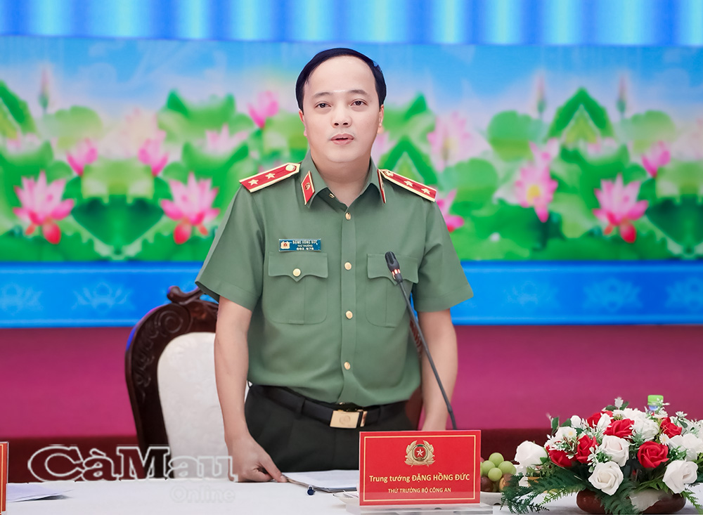 Phát biểu kết luận buổi làm việc, Thứ trưởng Đặng Hồng Đức biểu dương những thành tích và kết quả nổi bật mà Công an tỉnh Cà Mau đạt được trong thời gian qua. Thứ trưởng đồng thời gửi lời cảm ơn sự quan tâm, chỉ đạo sâu sát của Tỉnh uỷ, HĐND, UBND tỉnh, qua đó tạo điều kiện để lực lượng Công an tỉnh hoàn thành xuất sắc mọi nhiệm vụ được giao. Đồng chí đề nghị Công an tỉnh nghiêm túc tiếp thu những hạn chế được Đoàn kiểm tra chỉ ra và khẩn trương khắc phục trong thời gian tới.