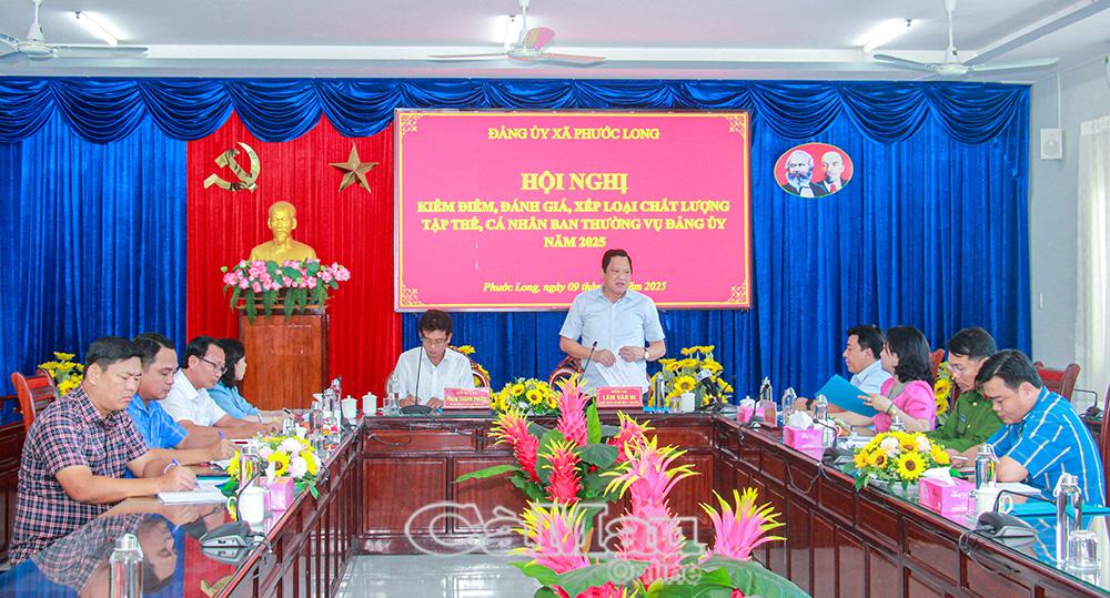 Trong bối cảnh vừa hợp nhất đơn vị hành chính và vận hành chính quyền địa phương 2 cấp, Ban Thường vụ Ðảng uỷ xã Phước Long đã nỗ lực vượt qua khó khăn ban đầu để hoàn thành xuất sắc nhiệm vụ năm 2025. Dự và chỉ đạo buổi kiểm điểm tập thể, cá nhân Ban Thường vụ Ðảng uỷ xã, đồng chí Lâm Văn Bi, Uỷ viên Ban Thường vụ Tỉnh uỷ, Phó Chủ tịch Thường trực UBND tỉnh Cà Mau, nhấn mạnh yêu cầu đánh giá phải dựa trên hiệu quả công việc, kết quả thực hiện nhiệm vụ và sản phẩm cụ thể gắn với vị trí việc làm.