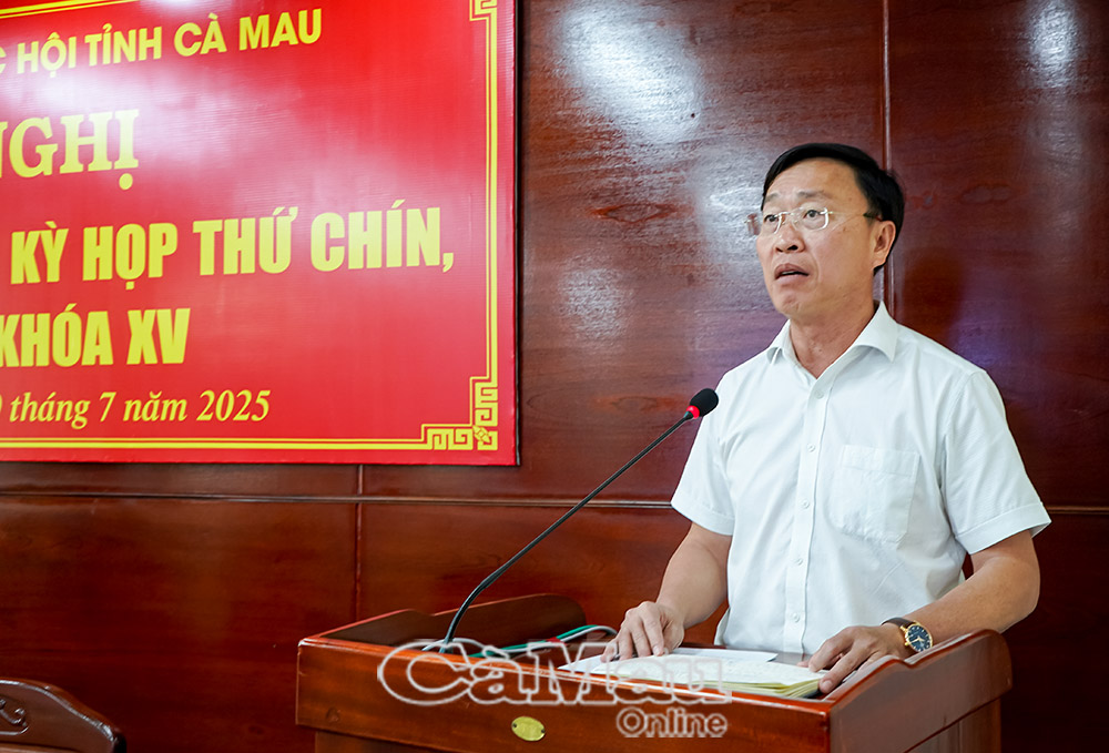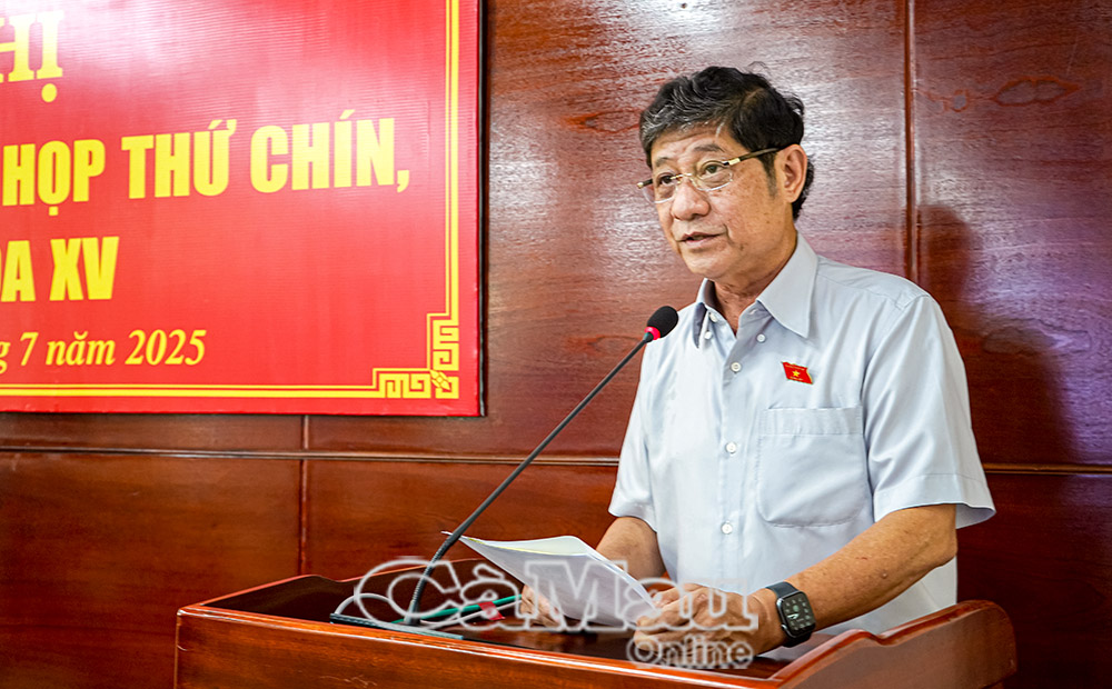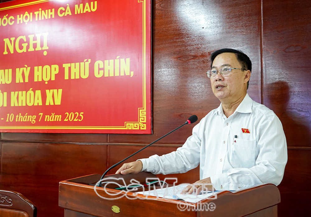 Thay mặt Đoàn đại biểu Quốc hội tỉnh Cà Mau, ông Nguyễn Quốc Hận, Phó Trưởng Đoàn ĐBQH tỉnh báo cáo tóm tắt kết quả Kỳ họp thứ Chín, Quốc hội khóa XV.
