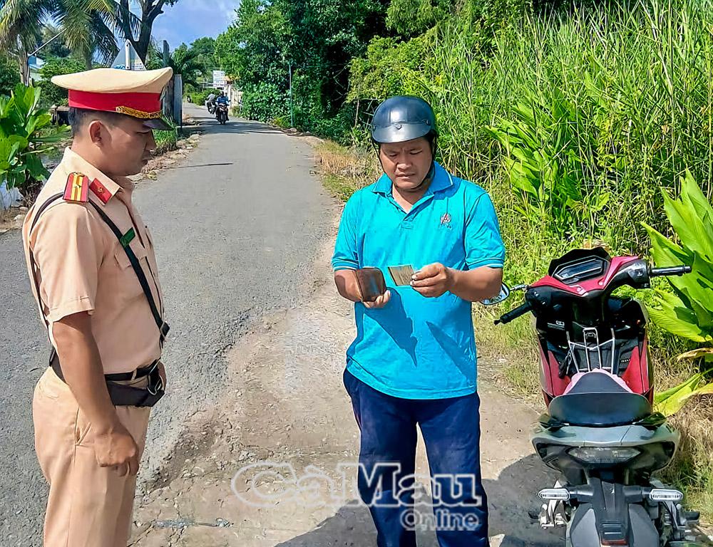 Cảnh sát giao thông phụ trách địa bàn cấp xã kiểm tra giấy tờ phương tiện tham gia giao thông.