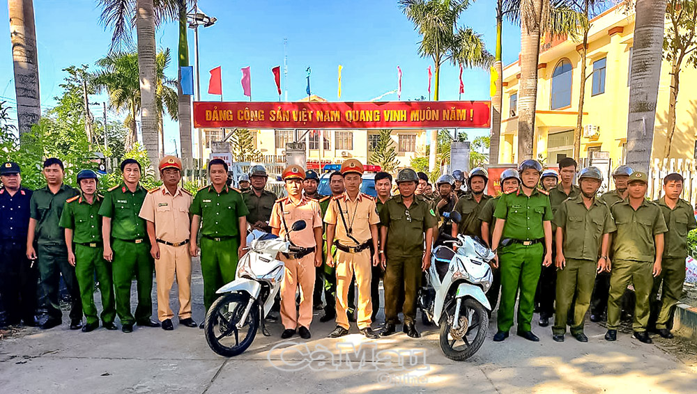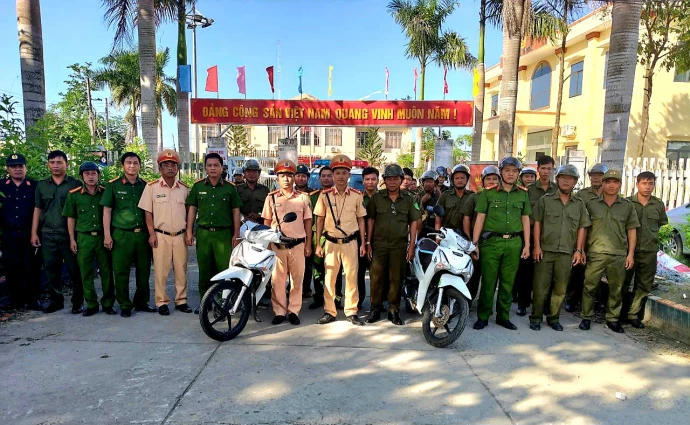 Hơn 60 cán bộ, chiến sĩ công an, quân sự, đoàn thể, mặt trận cùng phương tiện tham gia, thể hiện tinh thần phối hợp chặt chẽ, quyết tâm giữ vững địa bàn an toàn, ổn định.