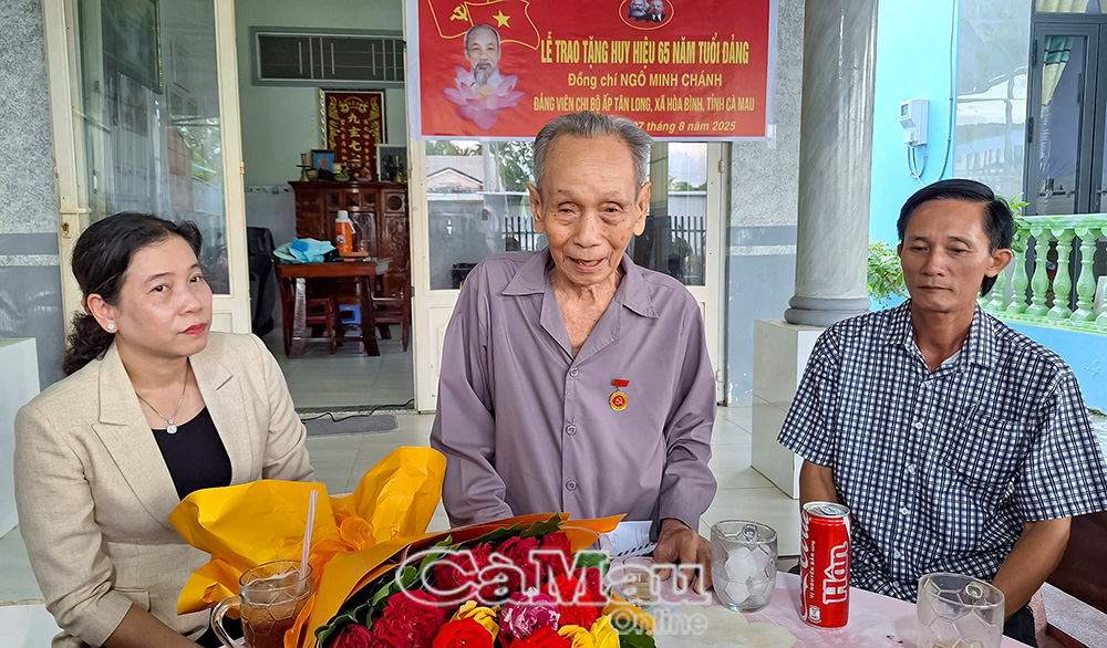 Xúc động khi đón nhận Huy hiệu 65 năm tuổi Đảng, đồng chí Ngô Minh Chánh bày tỏ lòng biết ơn trước sự quan tâm của các cấp uỷ Đảng; khẳng định sẽ luôn giữ gìn phẩm chất của người cộng sản, tiếp tục nêu gương sáng, động viên con cháu và thế hệ trẻ giữ vững truyền thống cách mạng của gia đình, quê hương.