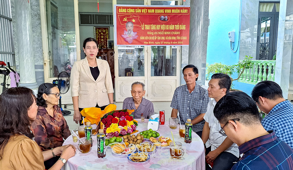 Phát biểu tại buổi lễ, đồng chí Tô Việt Thu chúc mừng, trân trọng ghi nhận những đóng góp của đồng chí Ngô Minh Chánh trong suốt quá trình công tác và sinh hoạt Đảng. Đồng chí khẳng định, việc trao Huy hiệu Đảng thể hiện sự quan tâm, tri ân sâu sắc của Đảng đối với những đảng viên cao niên, là nguồn động viên để các thế hệ cán bộ, đảng viên tiếp tục rèn luyện, phát huy phẩm chất, góp phần xây dựng quê hương ngày càng phát triển.