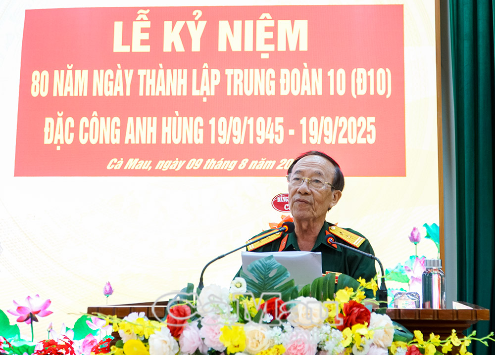 Đến dự Lễ kỷ niệm có đồng chí Nguyễn Văn Khởi, Phó Chủ tịch Uỷ ban MTTQ Việt Nam tỉnh Cà Mau; đại diện lãnh đạo Bộ Chỉ huy Quân sự tỉnh Cà Mau, Trung đoàn Đặc công Đ10 và các thế hệ người lính gắn bó với Trung đoàn Đ10 Anh hùng.