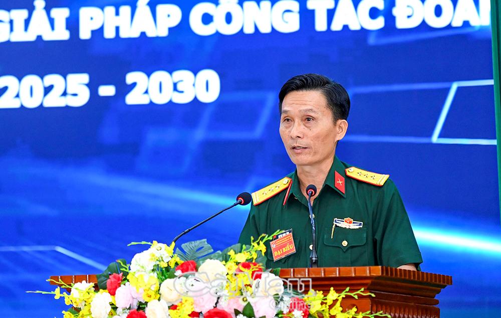 Thượng tá Huỳnh Minh Tửng, Phó Chủ nhiệm Chính trị, báo cáo kết quả hoạt động công tác Đoàn giai đoạn 2022-2025.