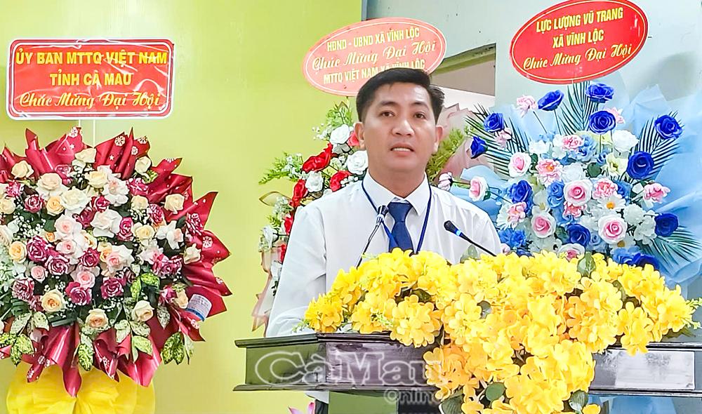 Phát biểu chỉ đạo, ông Bùi Minh Hải, Phó Chủ tịch Uỷ ban MTTQ Việt Nam tỉnh Cà Mau ghi nhận và đánh giá cao công tác chuẩn bị chu đáo, tinh thần trách nhiệm của xã Vĩnh Lộc đối với Đại hội. Đồng chí nhấn mạnh, báo cáo chính trị trình Đại hội đã thể hiện rõ quyết tâm đổi mới, khát vọng vươn lên và những bước đi vững chắc, góp phần thúc đẩy phát triển kinh tế - xã hội, củng cố hệ thống chính trị địa phương.