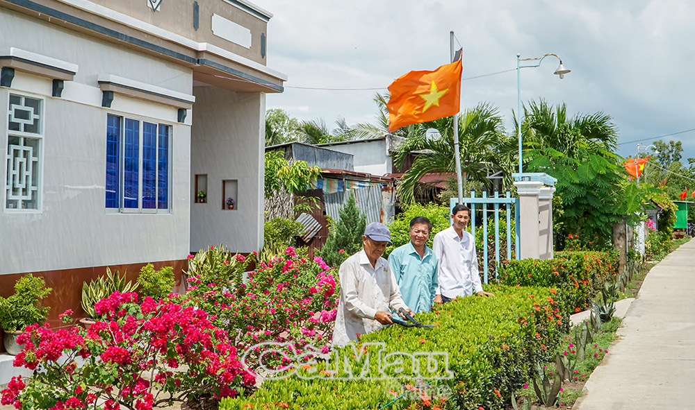 Diện mạo nông thôn mới khởi sắc của xã Phú Tân. (Trong ảnh: Tuyến đường sáng - xanh - sạch - đẹp ấp Công Nghiệp).