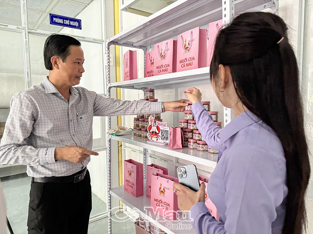 Đồng chí Lê Hồng Thịnh, Bí thư Đảng uỷ xã U Minh, khảo sát mô hình làm muối cua của Công ty Hương Bảo Châu.