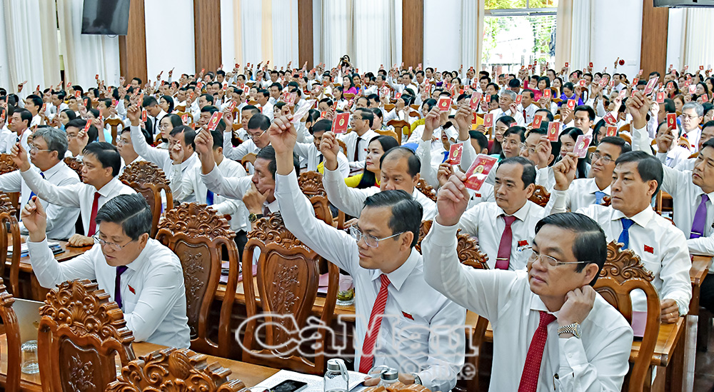 Đại biểu biểu quyết thông qua dự thảo nghị quyết đại hội.