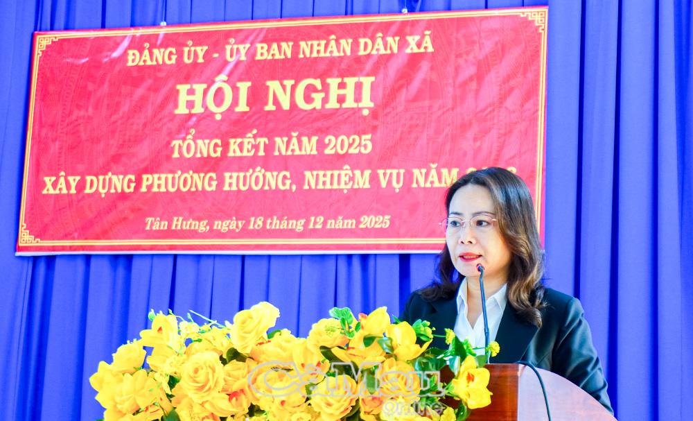 Phát biểu tại hội nghị, đồng chí Lê Thanh Triều, Phó Chủ tịch Thường trực Uỷ ban MTTQ Việt Nam tỉnh Cà Mau biểu dương những kết quả Đảng bộ, chính quyền, MTTQ, các đoàn thể và Nhân dân xã Tân Hưng đạt được trong năm 2025. Đồng chí đề nghị toàn hệ thống chính trị xã đổi mới tư duy, nâng cao trách nhiệm, đặc biệt là đội ngũ cán bộ, công chức, viên chức; khắc phục triệt để biểu hiện “chờ chỉ đạo”, sợ trách nhiệm; chuyển từ tư duy hành chính sang đột phá, đổi mới sáng tạo, dám nghĩ, dám làm, dám chịu trách nhiệm vì lợi ích chung.