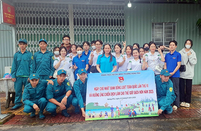 Đoàn phường Hưng Phú vừa phối hợp Đoàn Khoa Xã hội nhân văn và Truyền thông, Trường Đại học Tây Đô và Ban Chỉ huy Quân sự phường tổ chức “Ngày Chủ nhật xanh đồng loạt toàn quốc lần thứ VI” và chiến dịch “Làm cho thế giới sạch hơn năm 2025”, với hoạt động vệ sinh môi trường trên tuyến đường Võ Nguyên Giáp, đoạn từ cầu Bùng Binh đến cầu Bến Bạ, dài khoảng 1km. Đây là một trong những hoạt động tình nguyện, khẳng định vai trò tiên phong của tuổi trẻ phường trong xây dựng đô thị văn minh - xanh - sạch - đẹp.