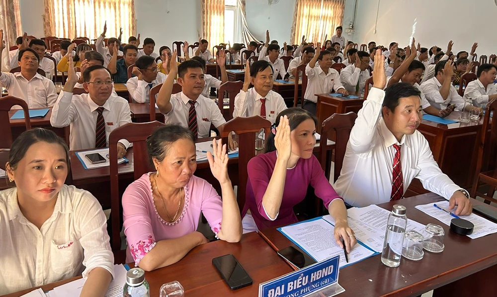 Đại biểu HĐND xã biểu quyết thông qua Nghị quyết phát triển kinh tế - xã hội và phân bổ dự toán thu, chi ngân sách nhà nước năm 2025.