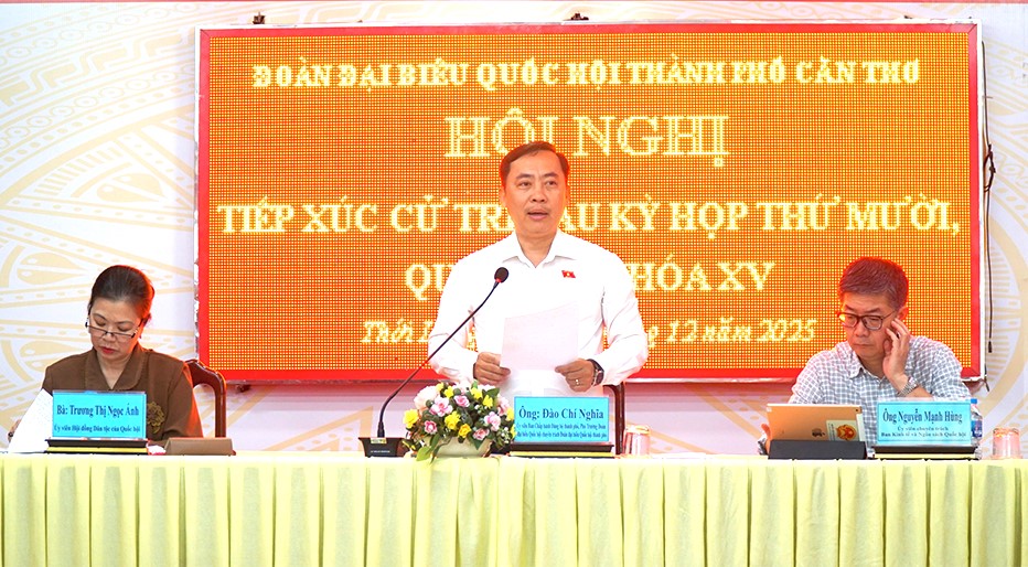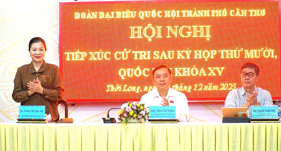 Sáng 14/12, tại Hội trường UBND phường Thới Long, Ðoàn đại biểu Quốc hội TP Cần Thơ gồm: Bà Trương Thị Ngọc Ánh, Ủy viên là đại biểu Quốc hội hoạt động kiêm nhiệm tại Hội đồng Dân tộc của Quốc hội; ông Nguyễn Mạnh Hùng, Ủy viên là đại biểu Quốc hội hoạt động chuyên trách tại Ủy ban Kinh tế và Tài chính của Quốc hội; Ông Đào Chí Nghĩa, Thành ủy viên, Phó Trưởng đoàn đại biểu Quốc hội chuyên trách Đoàn đại biểu Quốc hội TP Cần Thơ, tiếp xúc 120 cử tri phường Thới Long sau kỳ họp thứ Mười, Quốc hội khóa XV.