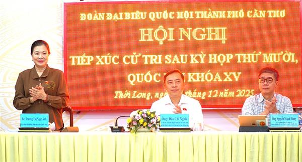Bà Trương Thị Ngọc Ánh phát biểu tiếp thu ý kiến kiến nghị của cử tri và đề nghị các cấp có thẩm quyền của TP Cần Thơ quan tâm hỗ trợ, giải quyết các vấn đề kiến nghị của cử tri.