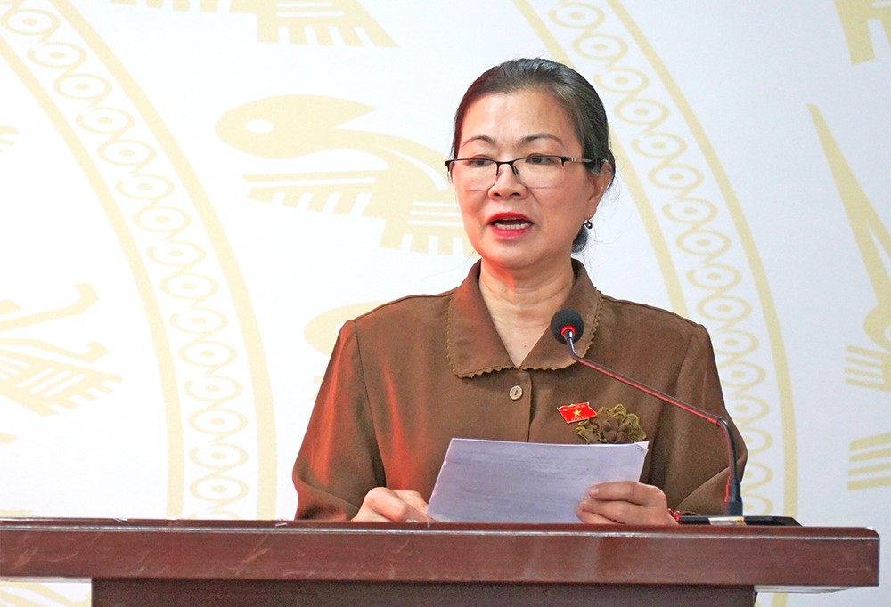Bà Trương Thị Ngọc Ánh phát biểu tiếp thu ý kiến kiến nghị của cử tri.