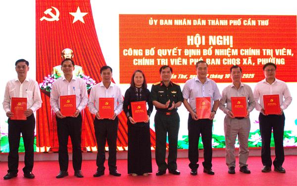 Thừa ủy quyền của Ủy ban nhân dân thành phố, Bộ Chỉ huy Quân sự thành phố đã công bố, trao Quyết định bổ nhiệm chức vụ Chính trị viên, Chính trị viên phó Ban Chỉ huy Quân sự xã, phường cho 64 đồng chí là Bí thư Đảng ủy, Phó Chủ tịch Ủy ban Mặt trận Tổ quốc Việt Nam kiêm Bí thư Đoàn thanh niên 32 xã, phường thuộc Ban Chỉ huy phòng thủ Khu vực 1 - Thới Lai đảm nhiệm.