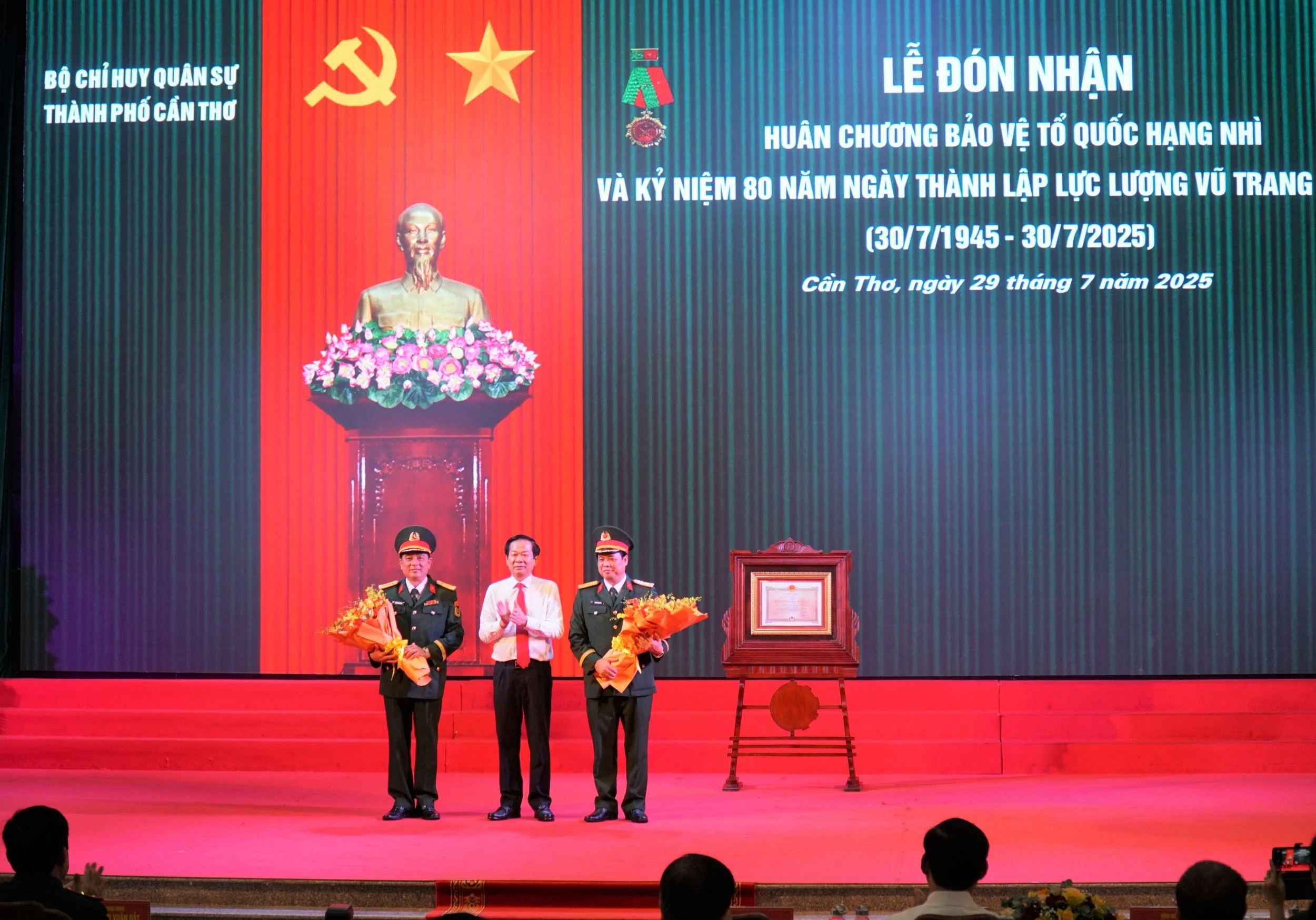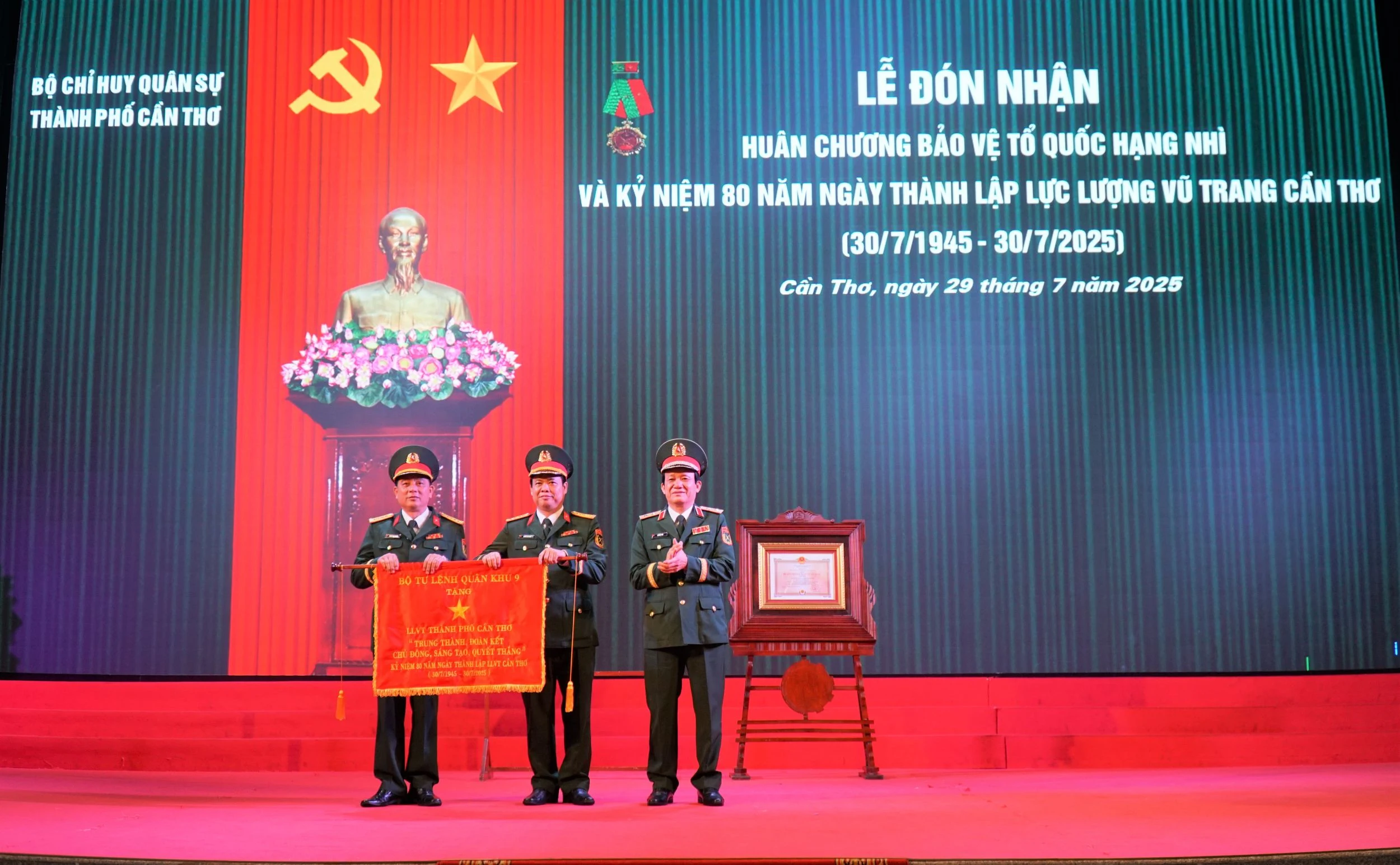 Ngày 29/7, Bộ Chỉ huy Quân sự TP Cần Thơ long trọng tổ chức Lễ đón nhận Huân chương Bảo vệ Tổ quốc hạng Nhì và kỷ niệm 80 năm Ngày thành lập lực lượng vũ trang Cần Thơ (30/7/1945-30/7/2025).