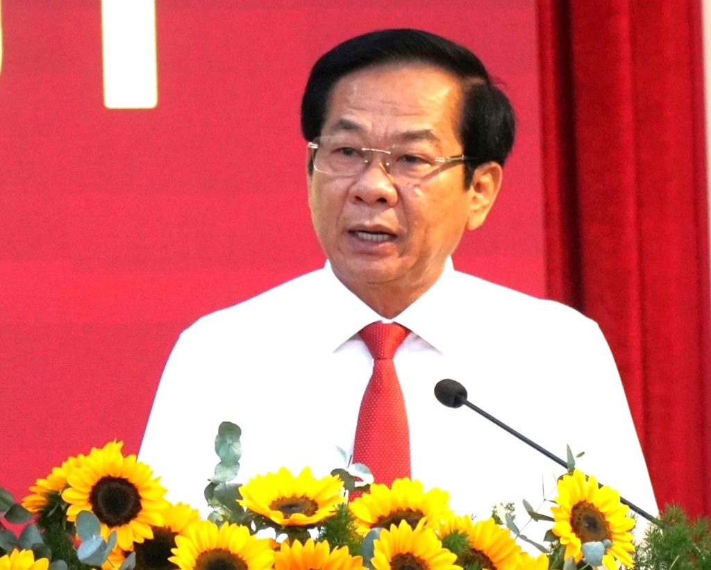 Đồng chí Đỗ Thanh Bình, Ủy viên Ban Chấp hành Trung ương Đảng, Bí thư Thành ủy phát biểu chỉ đạo tại ĐH đại biểu Đảng bộ phường Bình Thủy.
