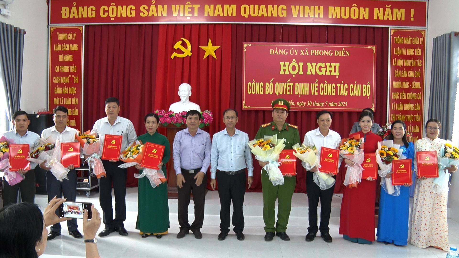 Tại buổi lễ, lãnh đạo Ban xây Đảng xã Phong Điền đã thông qua các quyết định về công tác cán bộ. Cụ thể, Ban Thường vụ Đảng ủy xã trao quyết định chỉ định, bổ sung 11 đồng chí vào Ban Chấp hành Đảng ủy xã, nhiệm kỳ 2025 - 2030; trong đó, có 03 đồng chí được bổ sung vào Ban Thường vụ Đảng ủy. Đồng thời, buổi lễ cũng đã công bố và trao quyết định đối với đồng chí Trần Thiện Triết, Ủy viên Ban Chấp hành Đảng ủy, Phó Chủ nhiệm Ủy ban Kiểm tra giữ chức Phó Chủ tịch UBND xã Phong Điền.