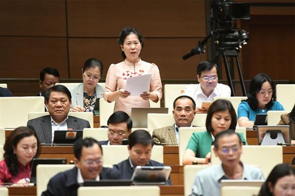 Đại biểu Tô Ái Vang phát biểu ý kiến thảo luận tại Hội trường.