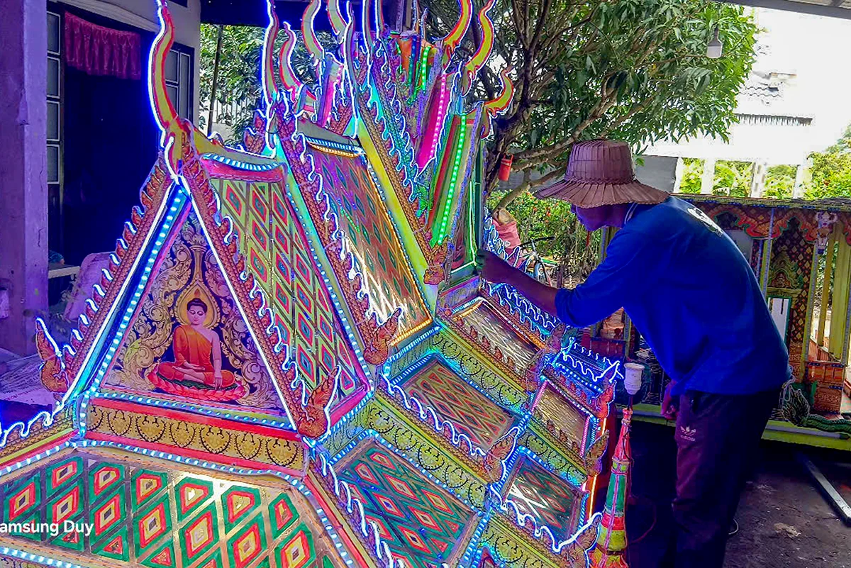 Tại chùa Chông Prêk, xã Tài Văn, anh Thạch Đi đang miệt mài vẽ họa tiết, đi hệ thống điện, hoàn thiện chiếc Protip mô phỏng theo ngôi chánh điện của chùa. Anh Đi chia sẻ: “Năm nào cũng vậy, để hoàn thiện một chiếc Protip, chúng tôi (gần 10 người) chuẩn bị hơn một tháng. Từ chọn vật liệu, hàn khung, tạo hình mô típ đến sơn vẽ hoa văn. Khi chiếc Protip được thả xuống dòng sông, ánh sáng phản chiếu lung linh trong tiếng nhạc ngũ âm, lúc đó ai nấy đều thấy tự hào vì nét văn hóa của dân tộc mình được tôn vinh”.