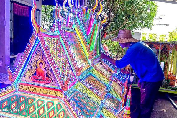 Chiếc Protip chùa Chông Prêk, xã Tài Văn (TP Cần Thơ) đang hoàn thiện sẵn sàng tham gia đêm hội.