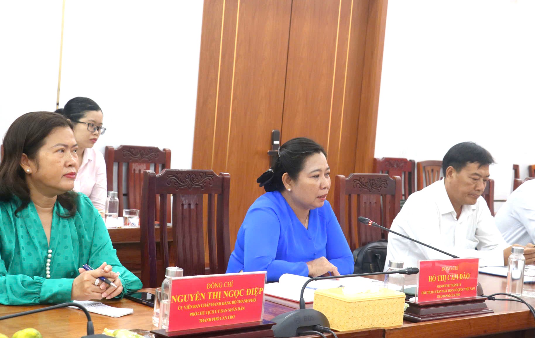 Bà Hồ Thị Cẩm Đào (thứ 2 từ trái qua), Phó Bí thư Thành ủy, Chủ tịch Ủy ban MTTQVN TP Cần Thơ phát biểu tại buổi làm việc.