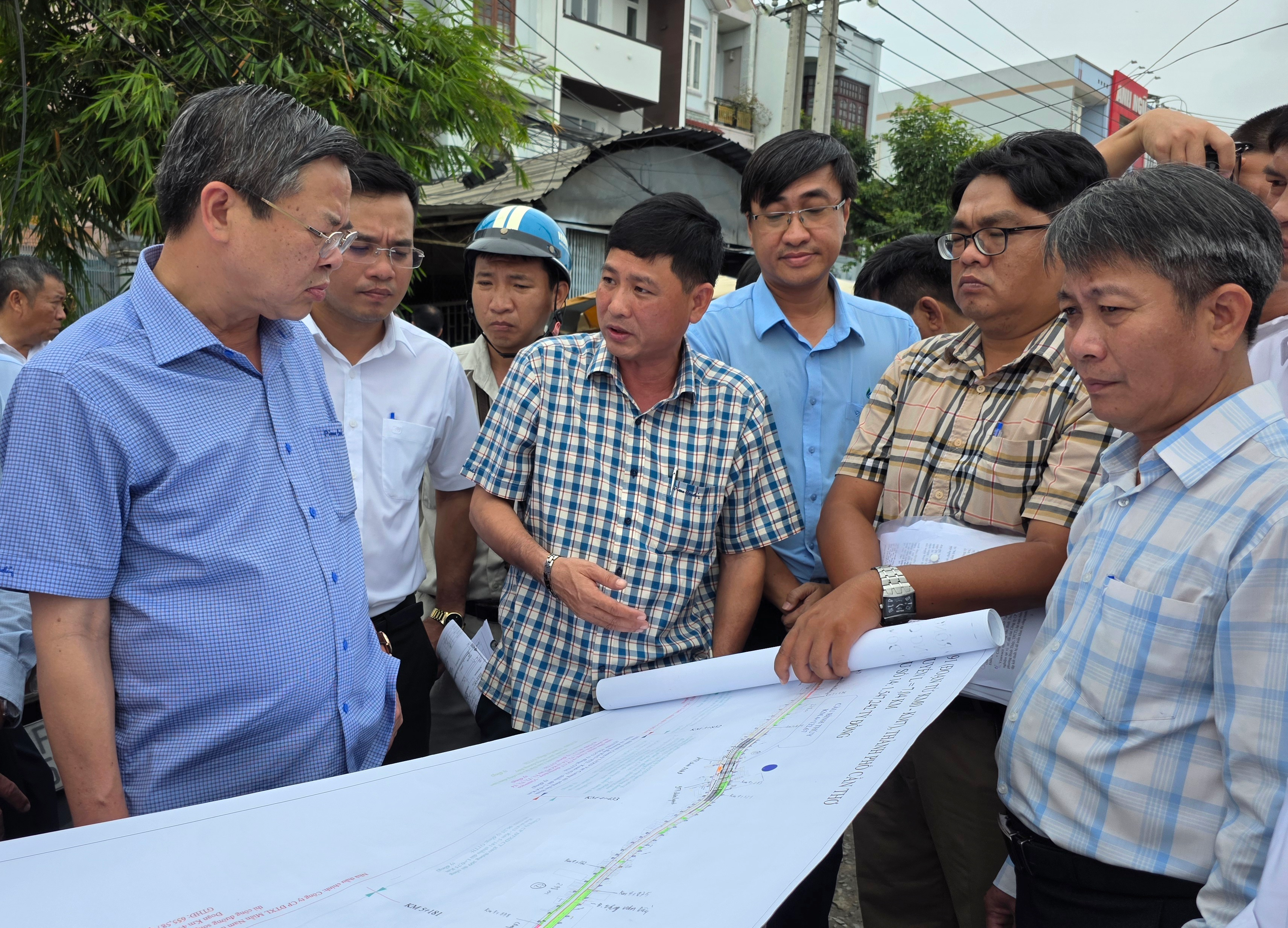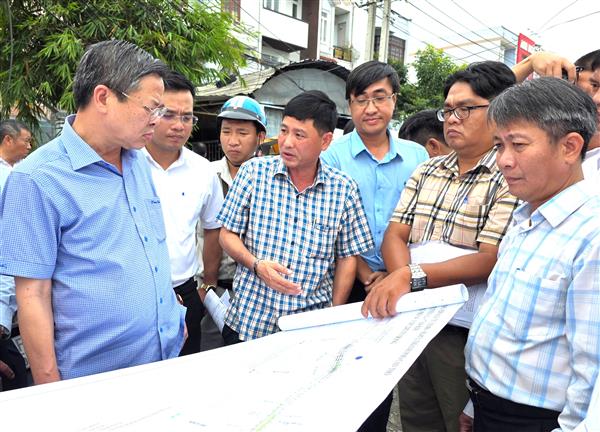 Ông Trương Cảnh Tuyên (bìa trái), Chủ tịch UBND TP Cần Thơ kiểm tra tiến độ dự án.