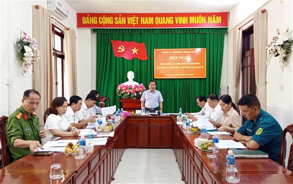 Đồng chí Lê Đức Toàn, Bí thư Đảng ủy phường Thuận Hưng, Chủ tịch HĐND phường phát biểu tại hội nghị kiểm điểm.