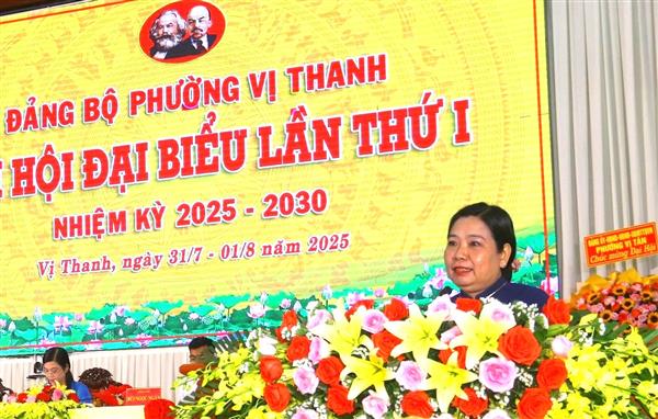 Ngày 01/8, phường Vị Thanh tổ chức Đại hội (ĐH) đại biểu lần thứ I, nhiệm kỳ 2025 - 2030. Đồng chí Hồ Thị Cẩm Đào, Phó Bí thư Thành ủy, Chủ tịch Ủy ban MTTQVN TP Cần Thơ, dự và chỉ đạo ĐH.