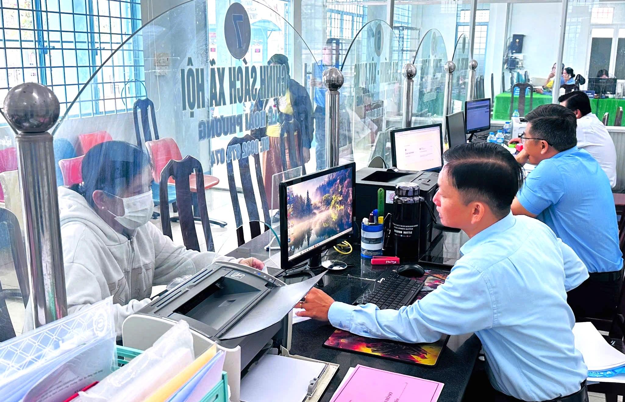 | Công chức Trung tâm Phục vụ hành chính công phường Thới An Đông thực hiện giải quyết thủ tục hành chính cho người dân. |
