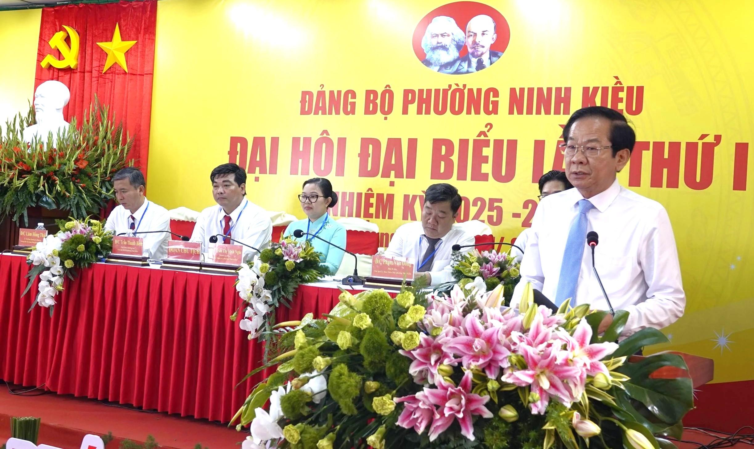 Bí thư Thành ủy đề nghị ngay sau ĐH, Ban Chấp hành Đảng bộ khóa mới khẩn trương cụ thể hóa Nghị quyết ĐH thành chương trình, kế hoạch cụ thể, sát hợp, đảm bảo khả thi; phát huy dân chủ, đoàn kết nội bộ, giữ vững kỷ cương, nâng cao năng lực quản lý điều hành, gắn bó mật thiết với nhân dân; cùng với sự lãnh đạo, chỉ đạo, hỗ trợ của cấp trên, phát huy mạnh mẽ nội lực để đưa phường Ninh Kiều phát triển trở thành đô thị hạt nhân của TP Cần Thơ, văn minh, hiện đại, xứng tầm là phường trung tâm của TP Cần Thơ.
