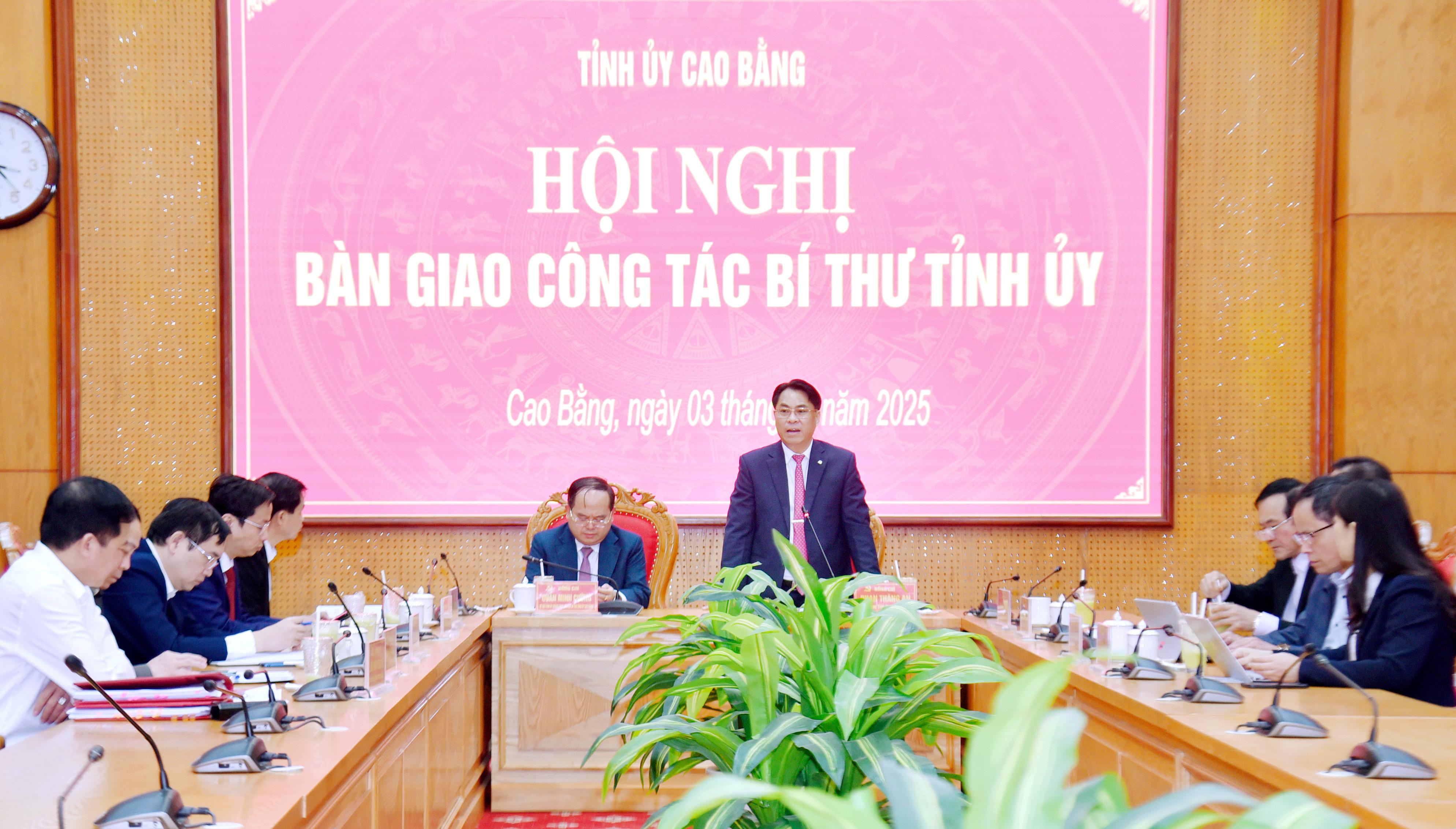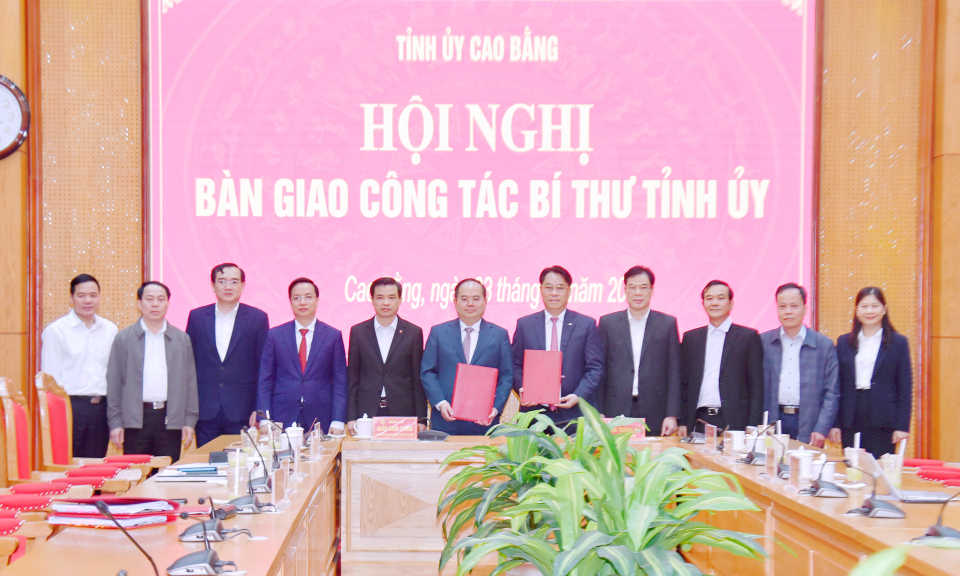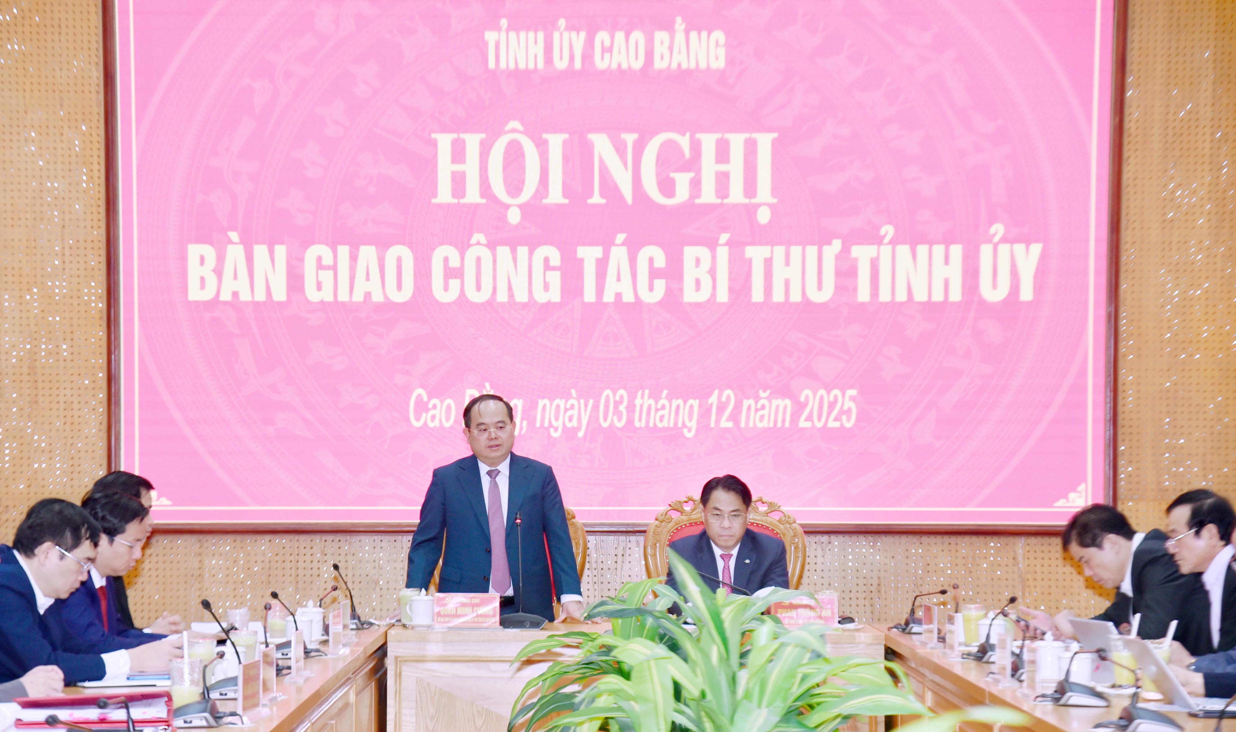 Chiều 3/12, Tỉnh ủy tổ chức hội nghị bàn giao công tác Bí thư Tỉnh ủy giữa 2 đồng chí: Phan Thăng An, tân Bí thư Tỉnh ủy Cao Bằng và đồng chí Quản Minh Cường, Bí thư Tỉnh ủy Quảng Ninh, nguyên Bí thư Tỉnh ủy Cao Bằng.