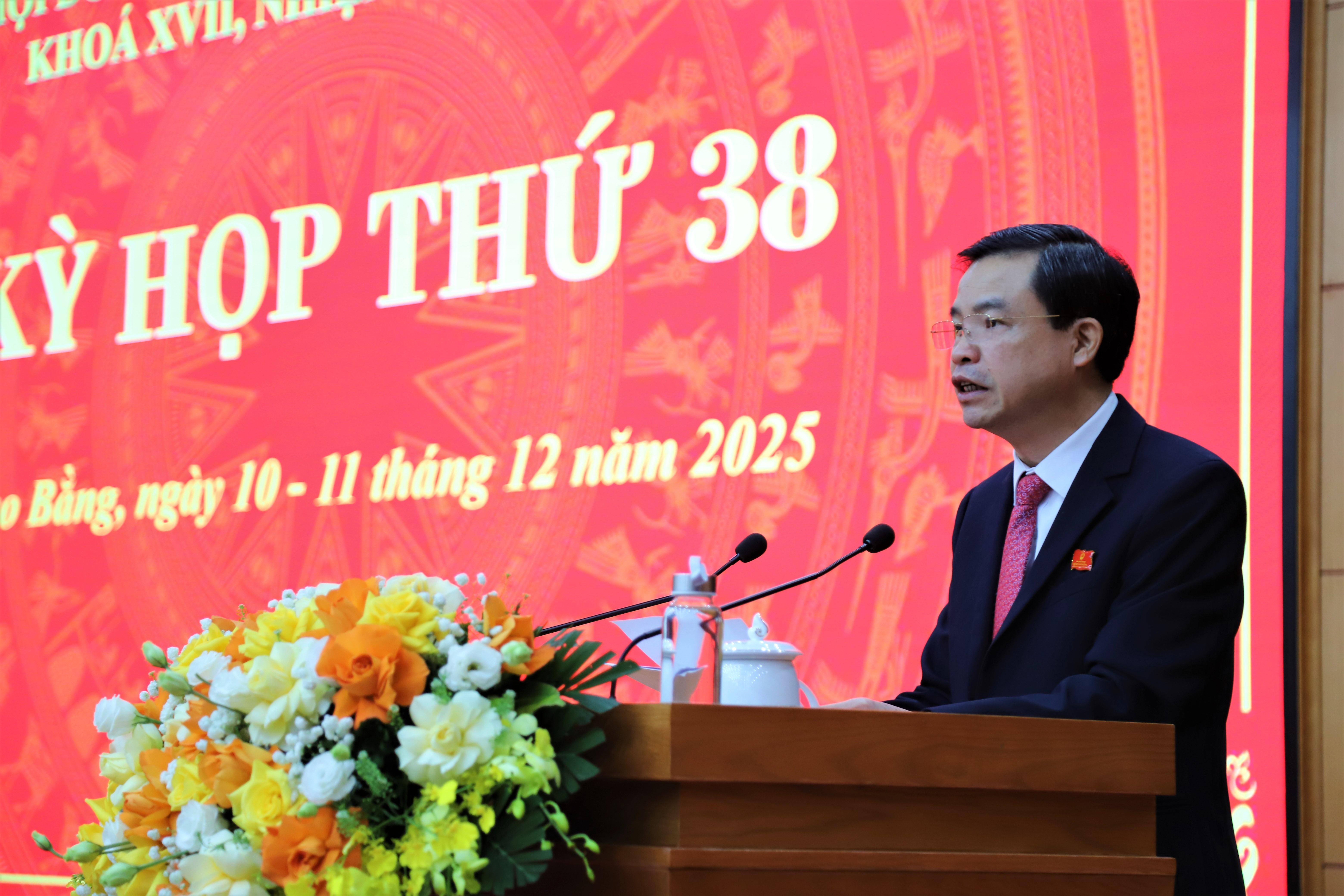 Sáng 10/12, HĐND tỉnh khóa XVII, nhiệm kỳ 2021 - 2026 khai mạc Kỳ họp thứ 38 (kỳ họp thường lệ cuối năm 2025). Các đồng chí: Bế Thanh Tịnh, Phó Bí thư Thường trực Tỉnh ủy, Chủ tịch HĐND tỉnh; Hà Nhật Lệ, Tỉnh ủy viên, Phó Chủ tịch HĐND tỉnh đồng chủ trì.