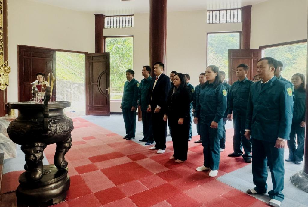Nhân dịp này, Chi bộ Quân sự xã Bạch Đằng dâng hương tại KIhu lưu niệm đồng chí Hoàng Đình Giong, Tổ dân phố 8 Đề Thám, phường Thục Phán.