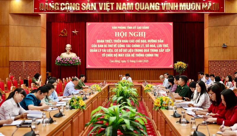 Hội nghị quán triệt Công văn 64-CV/TW, ngày 10/4/2025 của Ban Bí thư Trung ương Đảng về lưu trữ và quản lý tài liệu, cơ sở dữ liệu tài liệu trong quá trình sắp xếp tổ chức bộ máy của hệ thống chính trị và đơn vị hành chính ở địa phương. Theo đó, toàn bộ tài liệu, cơ sở dữ liệu tài liệu của các cấp ủy, cơ quan, tổ chức Đảng, MTTQ Việt Nam và các tổ chức chính trị - xã hội cấp tỉnh, cấp huyện và cấp xã khi kết thúc hoạt động phải quản lý chặt chẽ, không để xảy ra hư hỏng, mất mát, thất lạc hoặc tiêu hủy trái phép. Toàn bộ tài liệu phải được tập trung đủ, chỉnh lý và giao nộp vào Lưu trữ lịch sử của Đảng ở cấp tỉnh. Trong quá trình giao nộp, tiếp nhận tài liệu, các cơ quan, tổ chức liên quan phải kiểm tra, đối chiếu, lập biên bản, bảo quản an toàn, giữ gìn bí mật, không làm xáo trộn tài liệu của các cơ quan, tổ chức. Các cơ quan, tổ chức đảm bảo các nguồn lực cần thiết cho việc giao nộp, tiếp nhận, quản lý tài liệu; có phương án kiện toàn Lưu trữ lịch sử của Đảng ở cấp tỉnh, lưu trữ của cơ quan, tổ chức ngay trong quá trình xây dựng đề án sắp xếp đơn vị hành chính và tổ chức bộ máy của hệ thống chính trị ở địa phương.