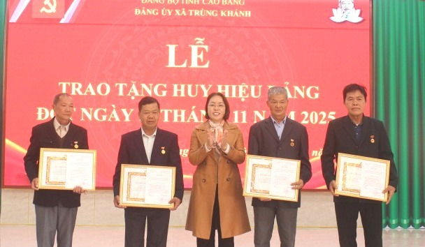 Đảng bộ xã Trùng Khánh có 14 đảng viên được trao tặng Huy hiệu Đảng từ 30 - 60 năm tuổi Đảng. Trong đó, 2 đảng viên được trao Huy hiệu 60 năm tuổi Đảng; 1 đảng viên được trao Huy hiệu 55 năm tuổi Đảng; 2 đảng viên được trao Huy hiệu 50 năm tuổi Đảng; 4 đảng viên được trao Huy hiệu 40 năm tuổi Đảng; 5 đảng viên được trao Huy hiệu 30 năm tuổi Đảng.