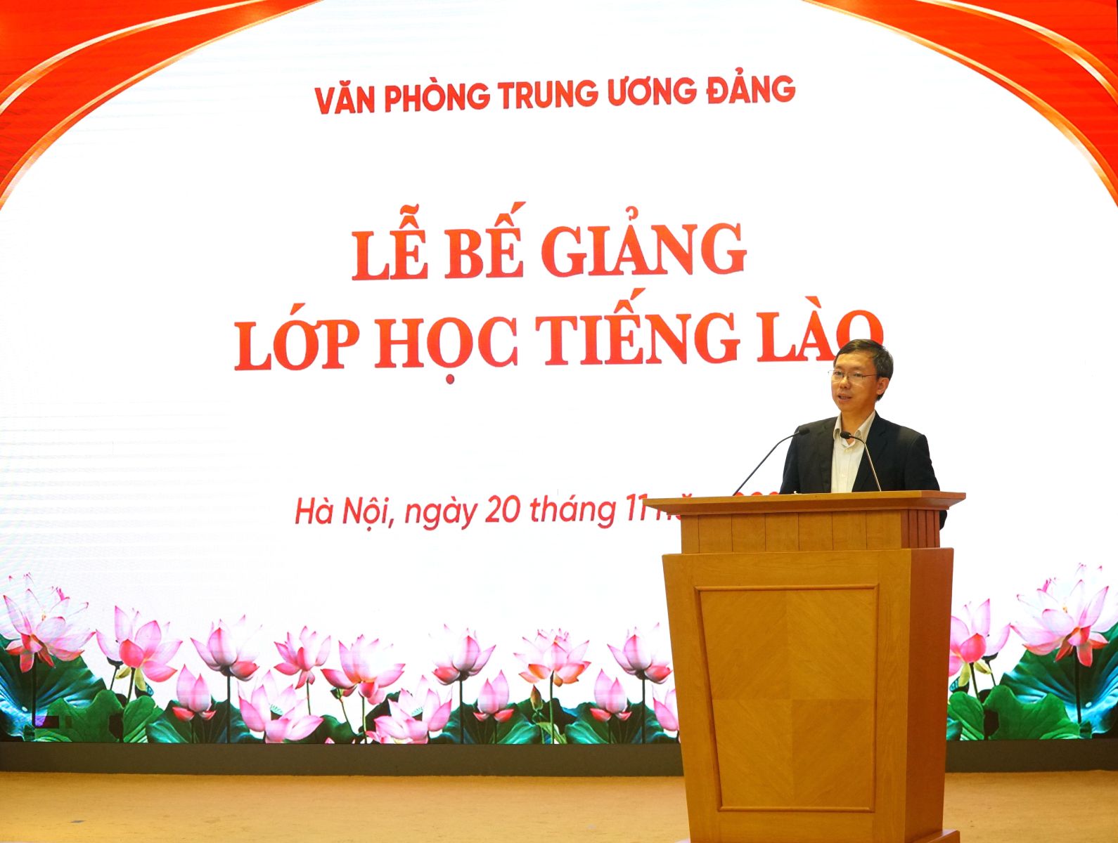 Phát biểu tại buổi Lễ, đồng chí Vũ Lam Sơn, Vụ trưởng Vụ Tổ chức-Hành chính mong muốn, sau khi kết thúc khóa học, bên cạnh công việc chuyên môn, các học viên sẽ tiếp tục học hỏi, nâng cao hiểu biết văn hóa nước bạn Lào, ngày càng hoàn thiện các kỹ năng nghe, nói để vận dụng linh hoạt vào thực tiễn công tác, hoàn thành tốt nhiệm vụ được phân công, góp phần tăng cường mối quan hệ công tác giữa Văn phòng Trung ương Đảng Cộng sản Việt Nam và Văn phòng Trung ương Đảng Nhân dân cách mạng Lào.