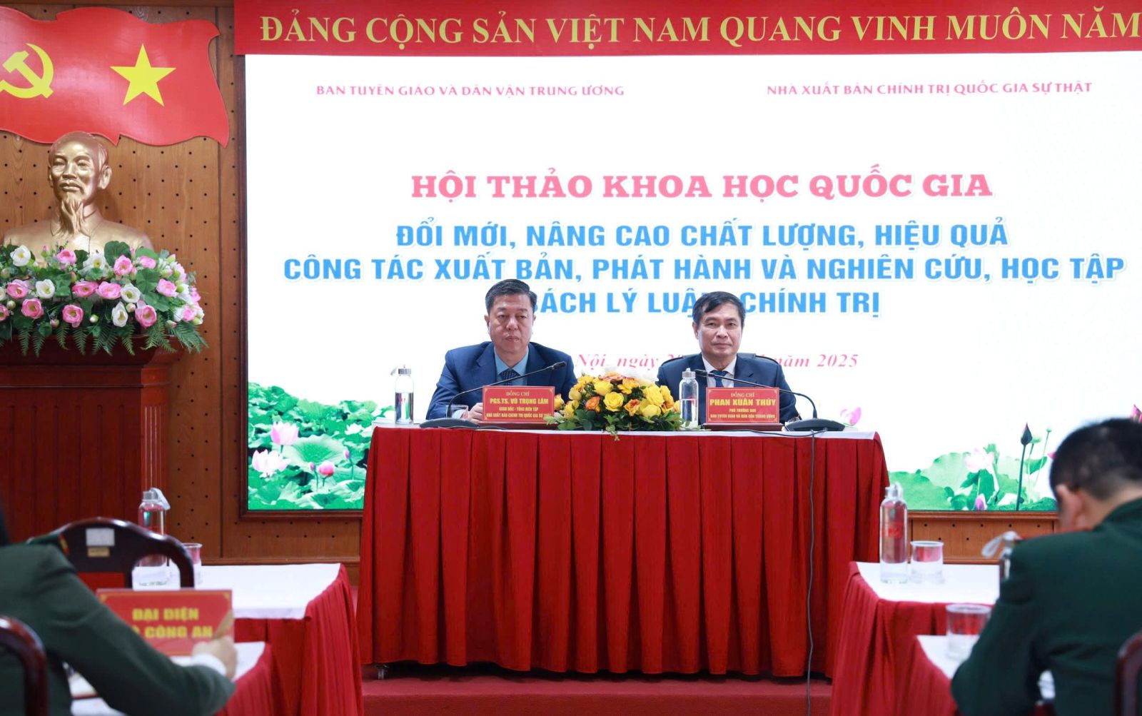 Đồng chí Phan Xuân Thủy, Phó Trưởng Ban Tuyên giáo và Dân vận Trung ương và PGS.TS. Vũ Trọng Lâm, Giám đốc - Tổng Biên tập Nhà xuất bản Chính trị quốc gia Sự thật chủ trì Hội thảo.