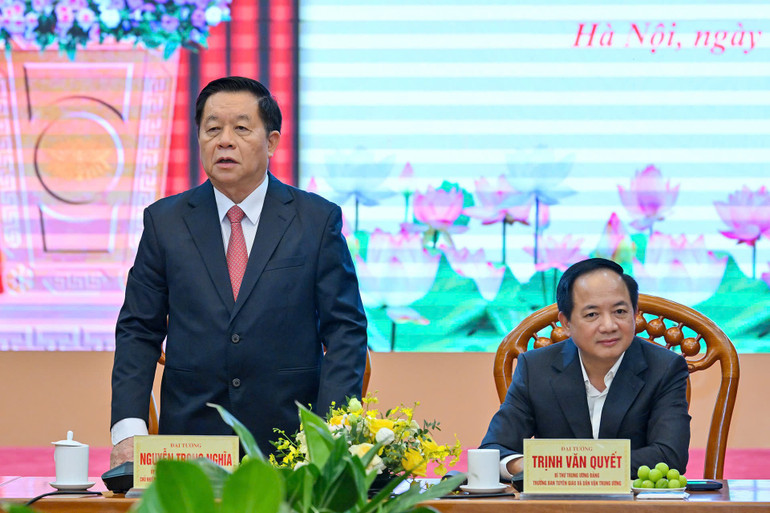Phát biểu tại hội nghị, Đại tướng Nguyễn Trọng Nghĩa bày tỏ niềm xúc động và vui mừng khi được gặp gỡ đội ngũ lãnh đạo, cán bộ Ban Tuyên giáo và Dân vận Trung ương trong thời điểm Bộ Chính trị vừa có những quyết định quan trọng về tổ chức, cán bộ, kiện toàn bộ máy.