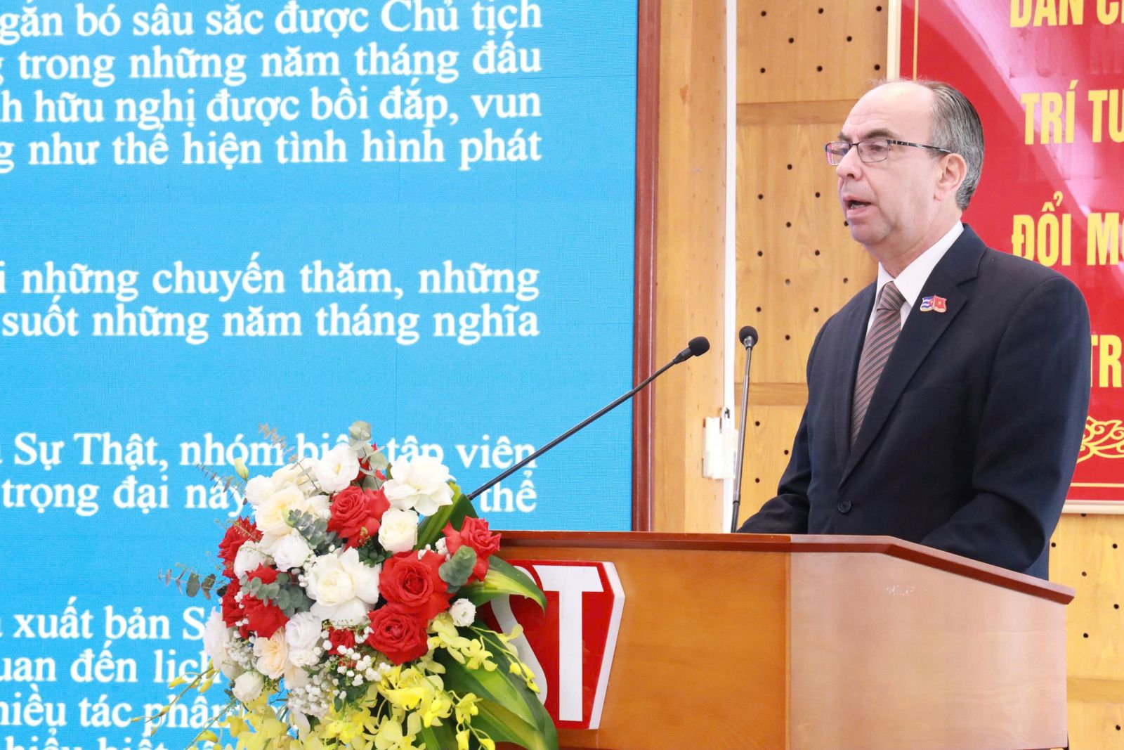 Đại sứ Rogelio Polanco Fuentes gửi lời chúc mừng Nhà xuất bản Chính trị quốc gia Sự thật đã ra mắt cuốn sách đúng dịp kỷ niệm trọng đại; đồng thời bày tỏ lòng biết ơn sâu sắc đối với những đóng góp bền bỉ, quan trọng của Nhà xuất bản trong nhiều năm qua thông qua việc xuất bản các ấn phẩm về lịch sử, đất nước, con người Cuba và dịch, xuất bản các tác phẩm của Việt Nam sang tiếng Tây Ban Nha để giới thiệu với độc giả Cuba.
